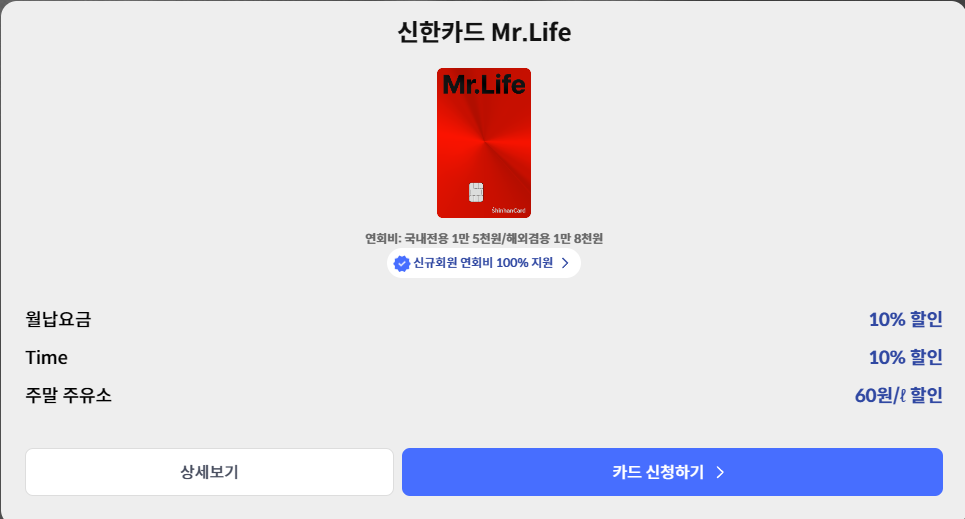2. 신한카드 Mr.Life 🏠